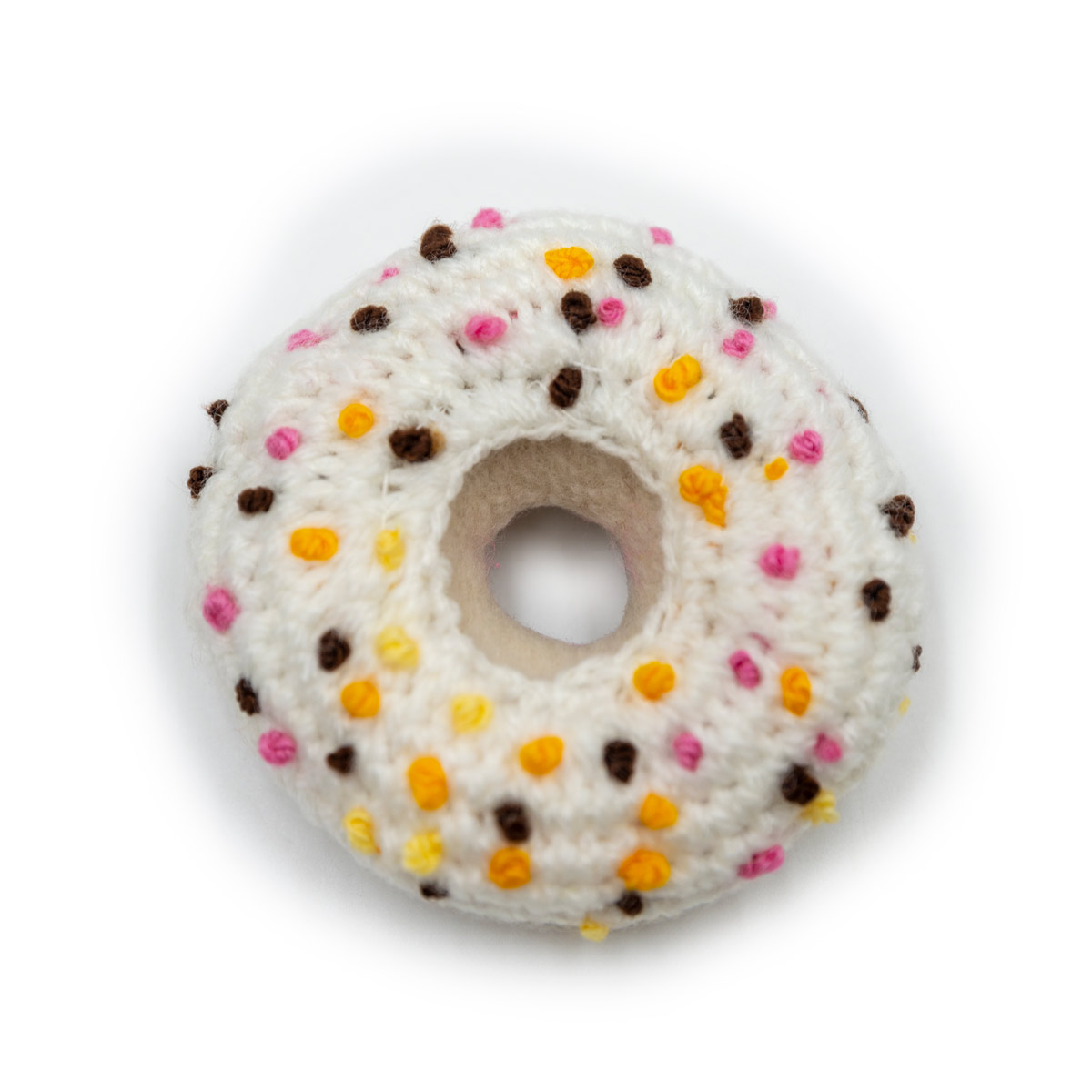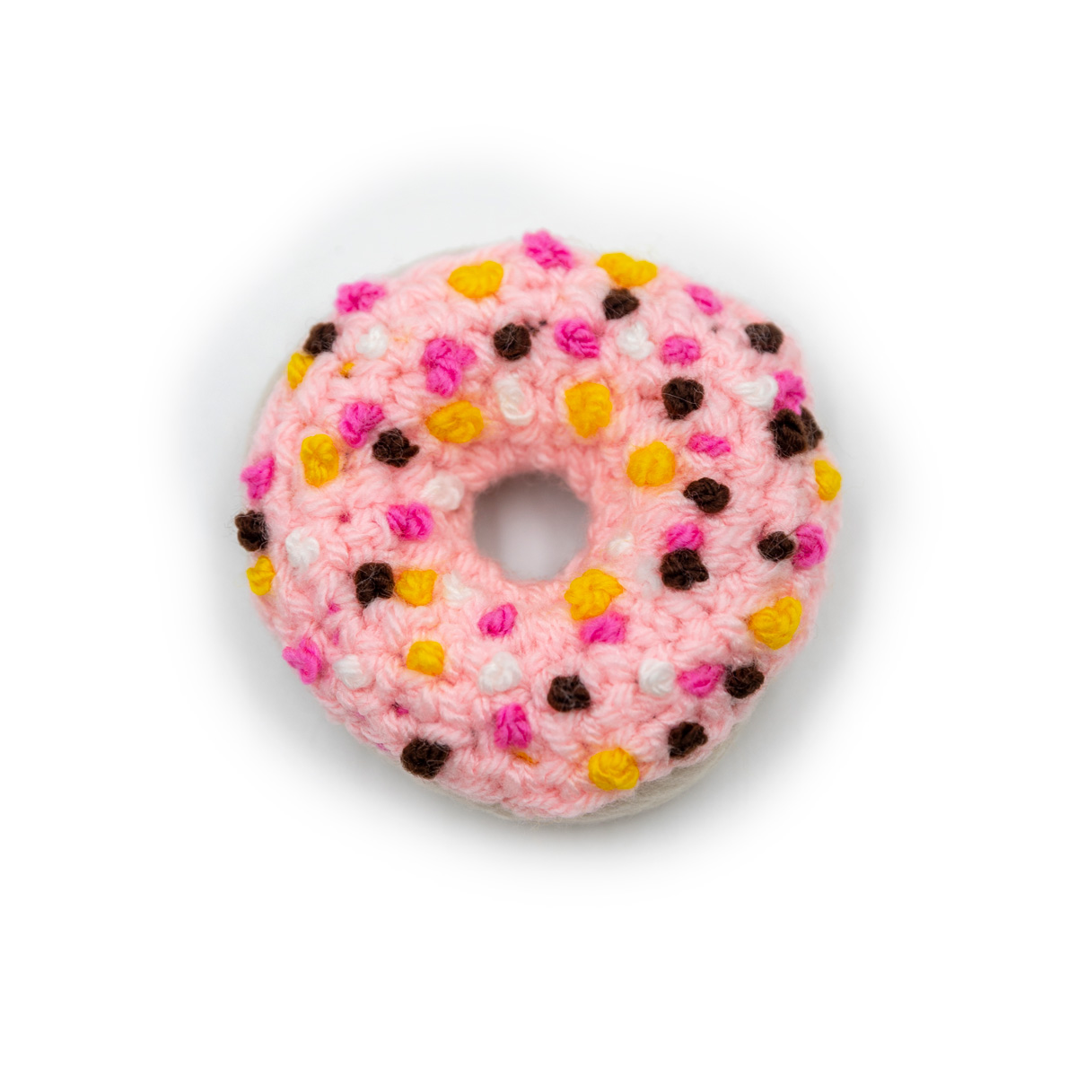 בובת דונאט מבד עם ציפוי סרוג. מגיע בשלושה צבעים.