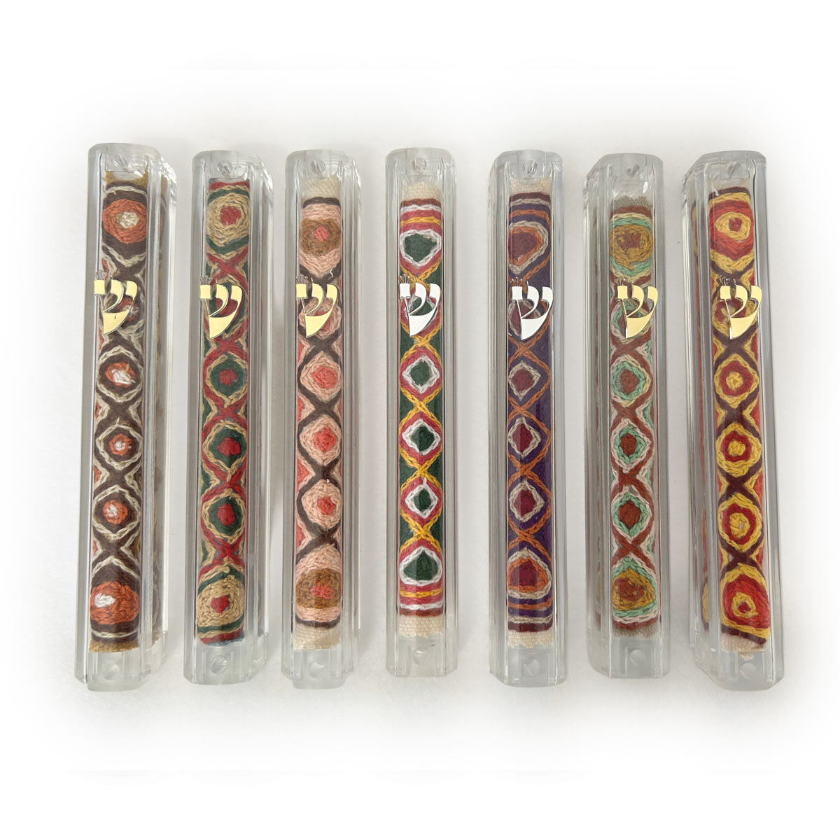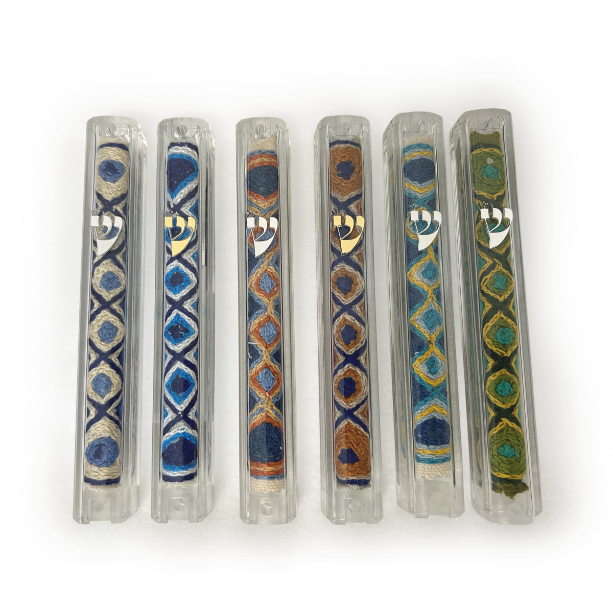 בית מזוזה עשוי פלסטיק שקוף ועמיד עם עיטור רקמה אתיופית צבעונית. כל בית מזוזה הוא אחר ומשלב צבעי רקמה שונים.