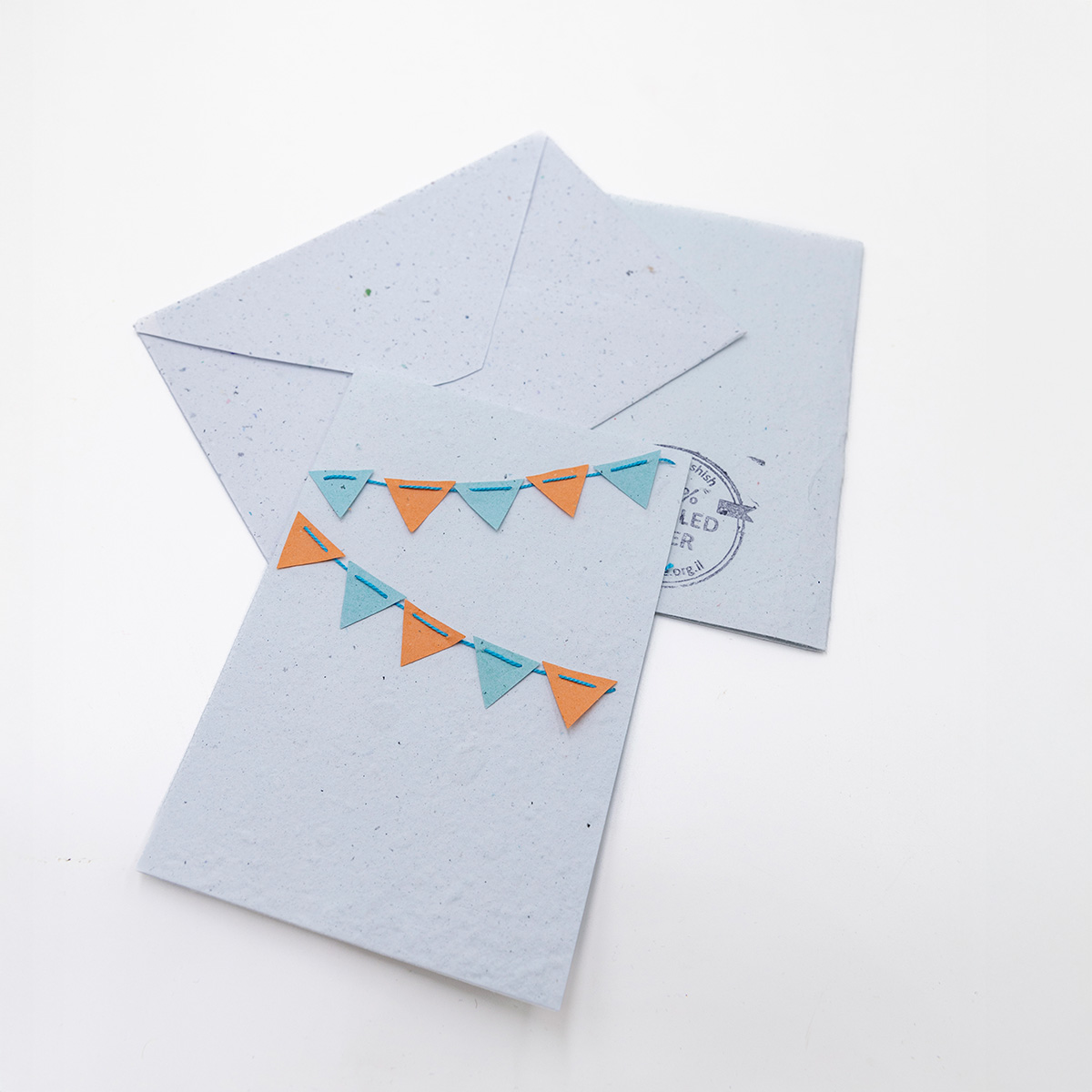 סט כרטיס ברכה ומעטפה עשויים נייר ממוחזר המיוצר בעבודת יד במקום.